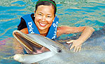 Nestled inside fabulous Xcaret Park is a very special place, where you can interact up close and personal with cute and funny dolphins! This dolphin swim is available only as an add-on to your Xcaret Tour, so you'll still have the rest of the day to enjoy the park - two in one! Experience the dolphins tricks, hugs, kisses, and pose for photos with them. You'll do this activity while standing on an underwater platform, so you don't even have to know how to swim! It is very popular, though, so you'll have to reserve well in advance. |